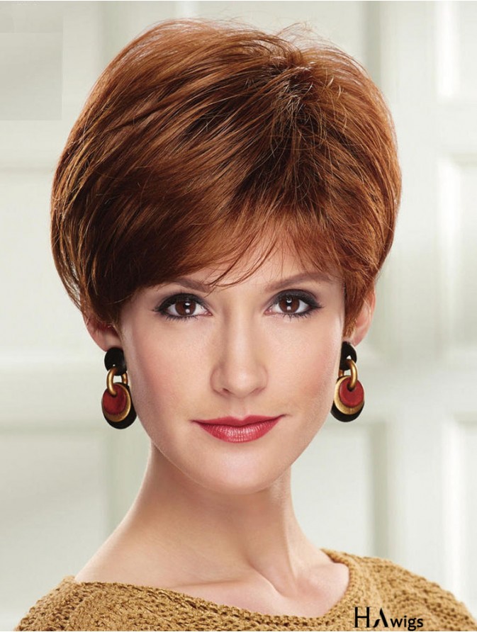 8 inch Designed Wavy With Bangs Auburn Short Wigs