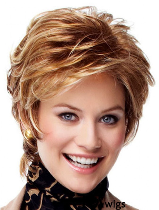 Ladies Blonde Wigs Wavy Style Short Length Blonde Color