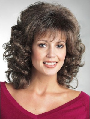 16 inch Brown Shoulder Length Layered Wavy Good Lace Wigs
