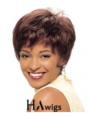 Brown Boycuts Cropped Synthetic Straight Ladies Monofilament Wig For Sale