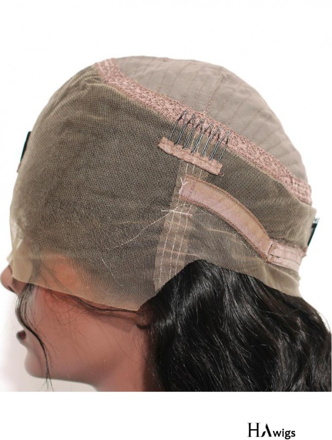 Without Bangs Remy Human Hair 20 inch Black Wavy 360 Lace Wigs