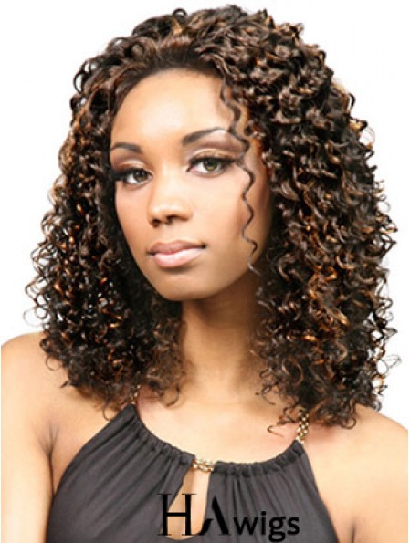 Durable Shoulder Length Kinky 18 inch Synthetic Glueless Lace Front Wigs