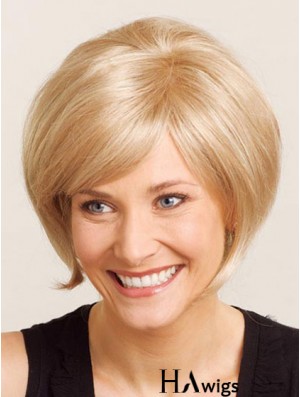 Chin Length Straight Blonde With Bangs UK Cheap Monofilament Wigs