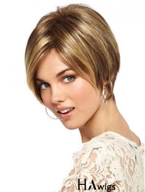 Synthetic Lace Front 6 inch Boycuts Straight Blonde Ladies Short Wigs