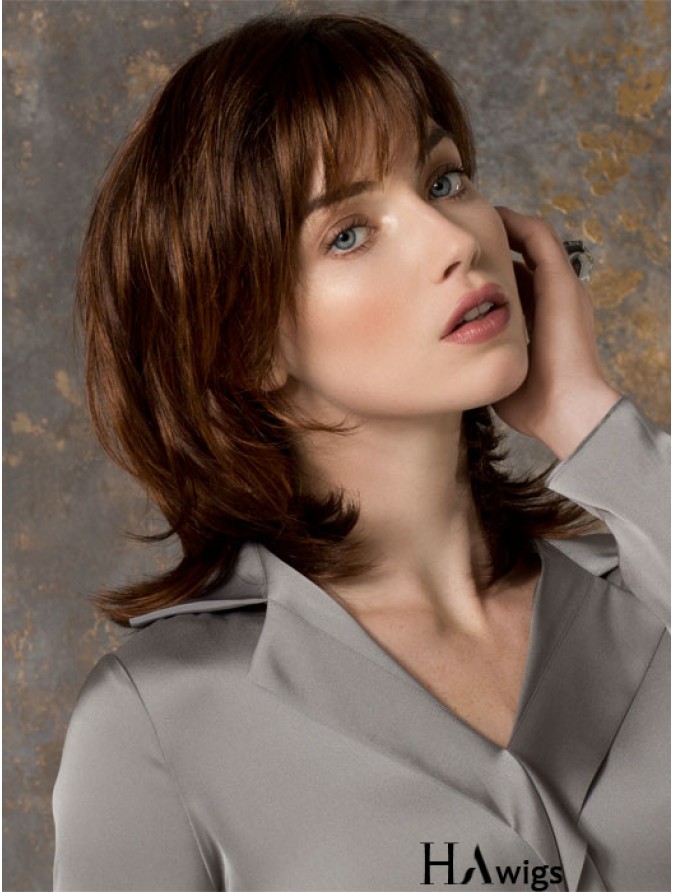 Brown Shoulder Length Straight Layered 16 inch Perfect Medium Wigs