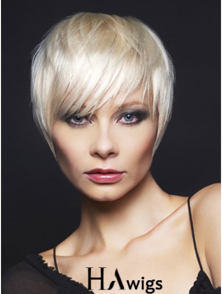 Straight Blonde Without Bangs 14 inch Monofilament Wig Sale