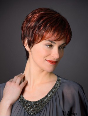 Straight Boycuts Capless 6 inch Red Cropped Cheap Synthetic Wig