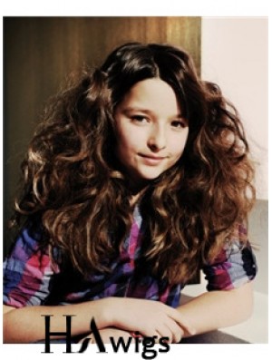 Kinky Brazilian Remy Hair Brown Shoulder Length Popular 3/4 Wigs